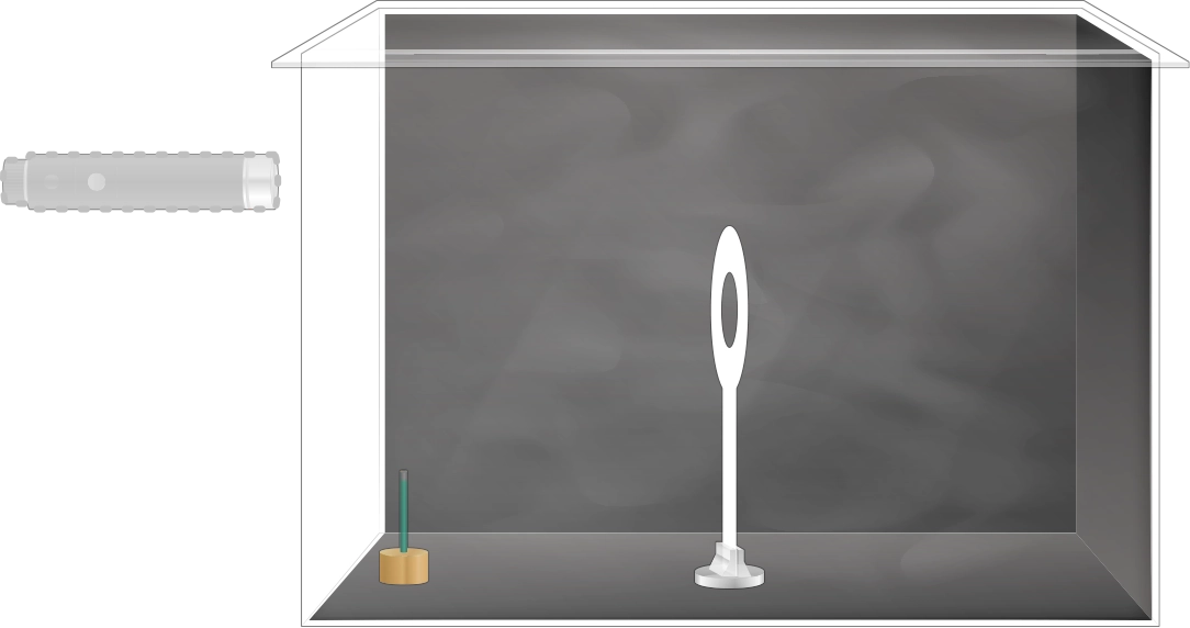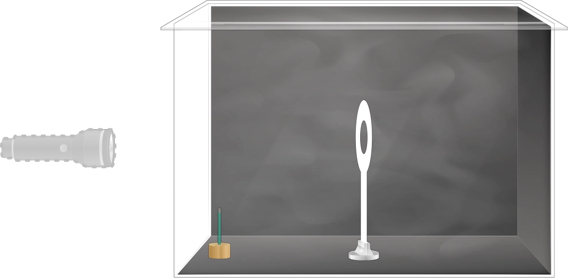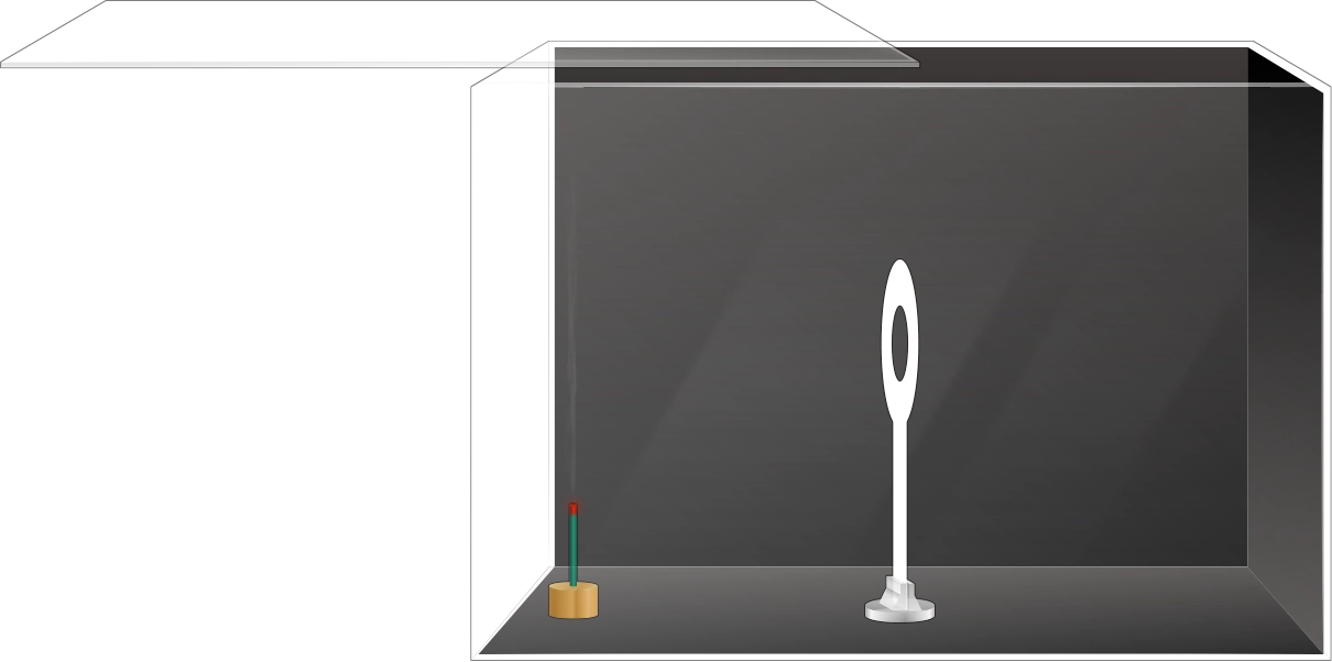투명 상자 안에 향을 피우고 투명 상자 뚜껑을 덮습니다.
