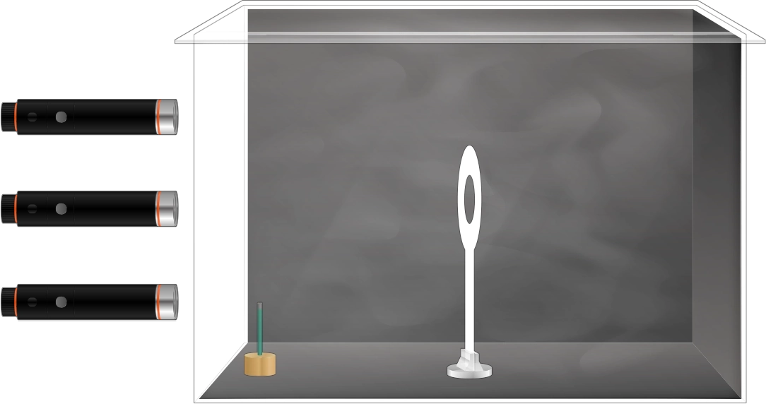 고리 모양 종이의 위, 구멍, 손잡이 부분에 레이저 빛을 각각 비춰 봅시다.