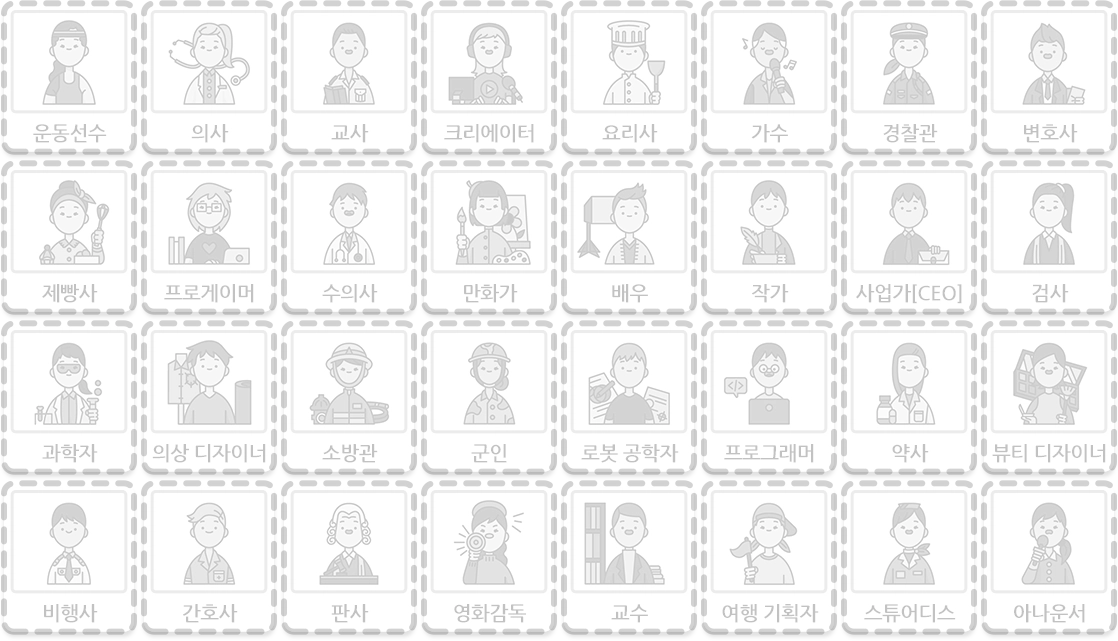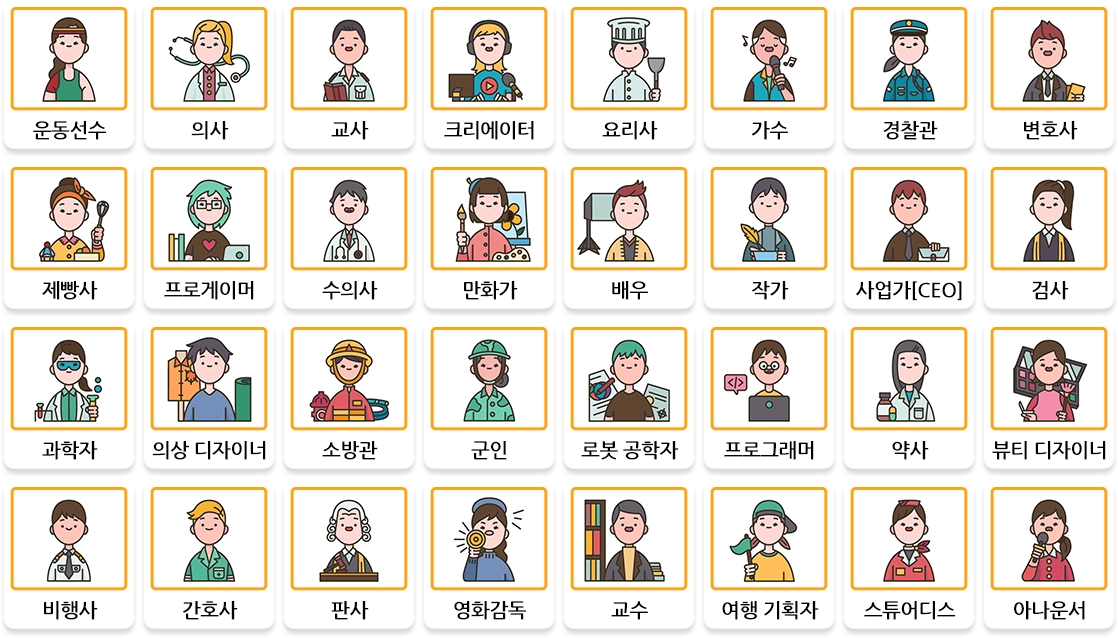 32 개 직업을 순서대로 두 개씩 비교하며, 더 많은 친구들이 좋아하는 직업 한 개를 찾아봅시다.