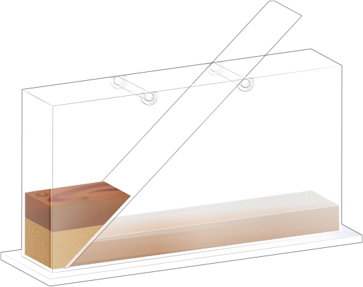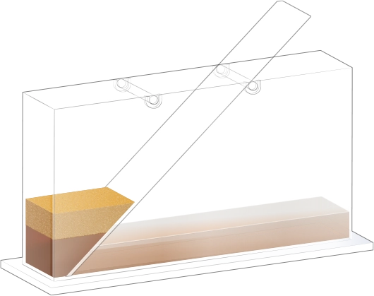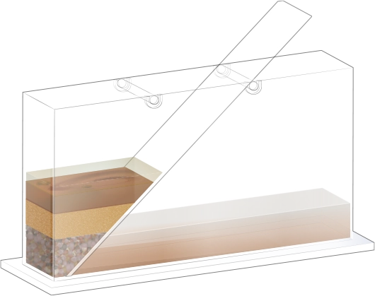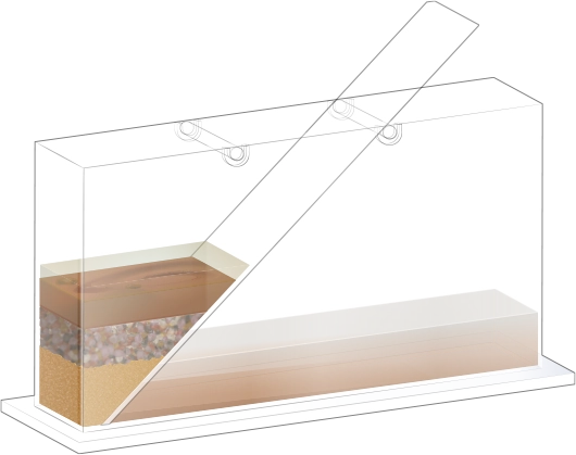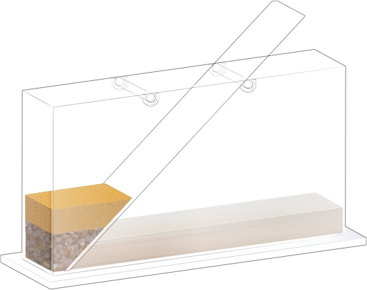 지층 실험용 수조에 경사면을 설치합니다.