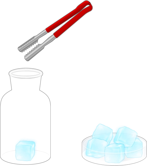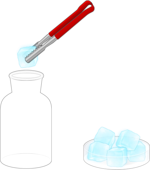 집게로 조각 얼음을 집기병에 옮겨 놓으세요.